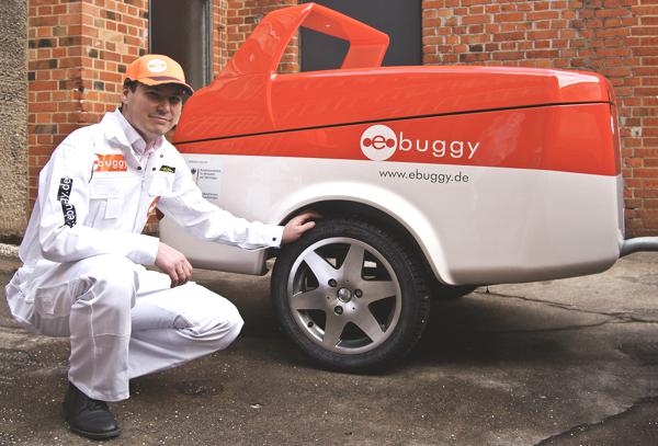 Die Idee ist simpel wie genial: Um die Reichweite von Elektroautos zu erhöhen, entwickelt die deutsche „ebuggy GmbH“ Autoanhänger, die die Fahrzeuge mit der nötigen Energie versorgen – quasi Zusatzpower per Huckepack. Geplant ist ein Netz von Relaisstationen an Autobahnen, wodurch der Fahrer ganz leicht die mit Batterien versehenen Anhänger ankoppeln und leere gegen vollgeladene austauschen kann. Einen ersten Prototypen gibt es bereits, der mit Unterstützung des Deutschen Bundesministeriums für Wirtschaft und Technologie sowie Partnern, u. a. das Fraunhofer Institut IPA und die Universität Stuttgart, gebaut wurde.